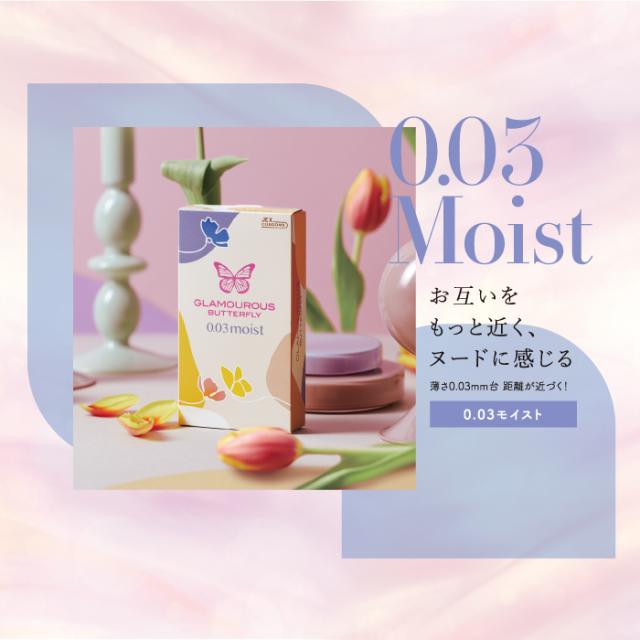 【期間限定送料無料】コンドーム 男性用 グラマラスバタフライ 0.03モイスト 8個入×1箱 メーカー直営