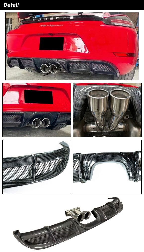 ディフューザー&マフラーカッターセット ポルシェ 718ボクスター 982 2016年02月〜 ブラックカーボン カーボンファイバー製 AP-XT2318