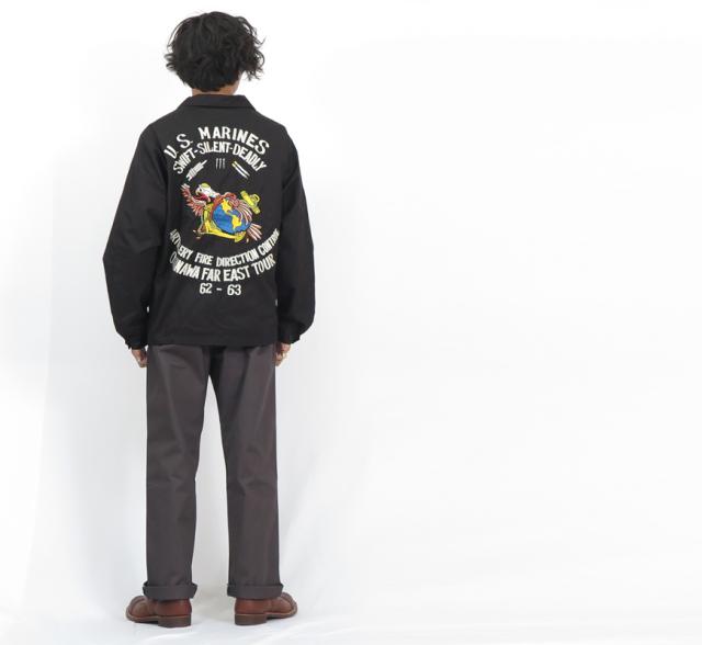 ■バズリクソンズ Buzz Rickson's ツアージャケット U.S. MARINES FAR EAST TOUR BR15311![]() モデル 身長175センチ 体重62キログラム 40を着用 米海兵隊の砲兵火力指令統制部隊が1962年から1963年にかけて極東ツアーの際に沖縄に駐留し、 その記念として現地で特別にオーダーして製作された一着。海兵隊のシンボルである鷹には躍動感があり、 綺麗な色使いと文字数の多い柄は秀逸で、このような柄はビンテージ市場においても滅多にお目にかかれない稀少な存在。 SWIFT(迅速な、早い)、SILENT(静かな)、DEADLY(命取り、致死)はこの部隊が使用する武器の凄まじさを表している。 ![]() バズリクソンズはシュガーケーン・サンサーフなどヴィンテージ系アメリカンカジュアルブランドを擁する東洋エンタープライズ社のミリタリーブランドです。同社とミリタリーとの関係は古く、同社の前身企業である港商事時代に米軍ベースにスーベニアジャケット(スカジャンなど)などの商品を納入していたというルーツを持ち、1993年にはフライトジャケットのファーストを発売。以後次々と復元されるミリタリーウエアはサンサーフのハワイアンシャツ、シュガーケーンのデニムウエアーと同様、どれも完璧な出来ばえです。 ![]() ![]() 105オフホワイト ![]() ![]() 119ブラック ![]() ![]() サイズ詳細 サイズの計測方法についてはこちらをご覧ください。 素材 表地:コットン100% 裏地:キュプラ100% 生産国 日本 カラー オフホワイト ブラック 備考 着丈は背面部分で計測しています。 サイズは実寸を計測し平均値を記載しております。若干の個体差はございますので、ご了承ください。 商品に関して 当店の取り扱い商品はヴィンテージアイテムをベースとしたデザインの商品が多数ございます。雰囲気を重視するために若干の縫製のずれ、生地の色合いや加工による風合い、色ムラなど、仕上がりが異なる場合もございますが、それらも商品の魅力としてご理解下さい。また商品の仕様(縫製・パーツ・色合い・サイズ等)は予告なく変更される場合がございます。以上の点をご理解いただいた上でお楽しみいただければ幸いです。 |