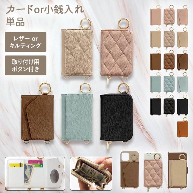 カード入れ 小銭入れ 単品 全機種 皮 革 PU 鏡 ミラー リング付き 小物 入れ 財布 ファスナー アクセサリー 携帯 カスタム カスタマイズ 後付け 取り外し 取り付け くすみ
