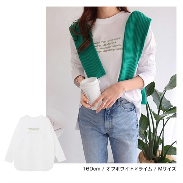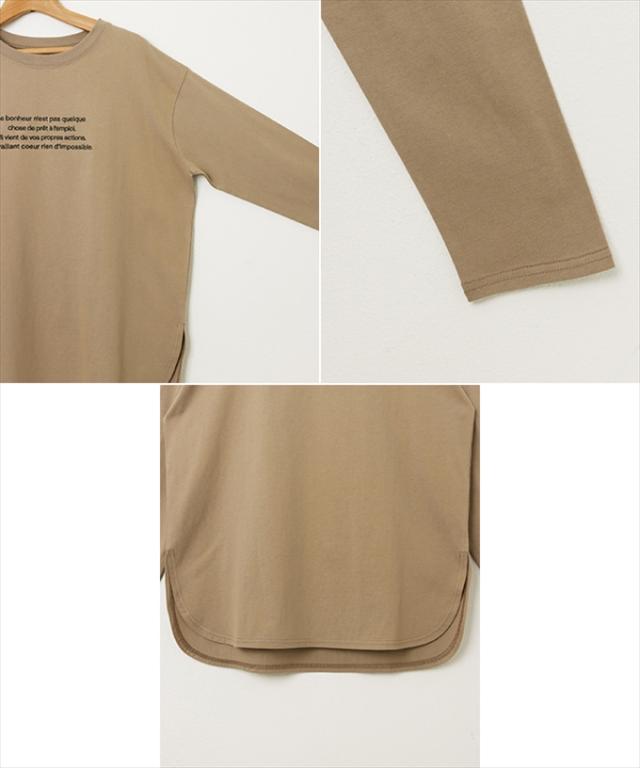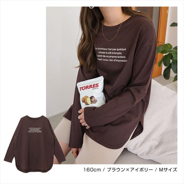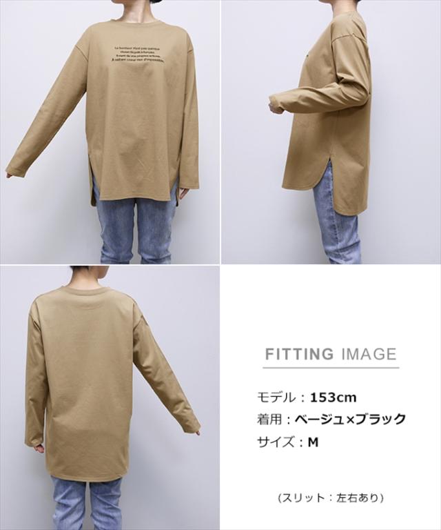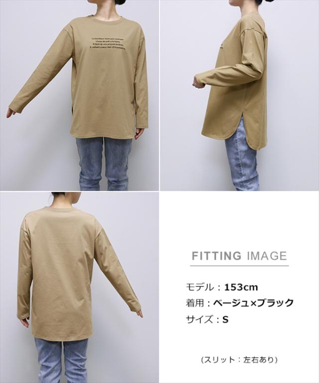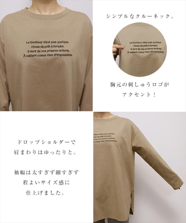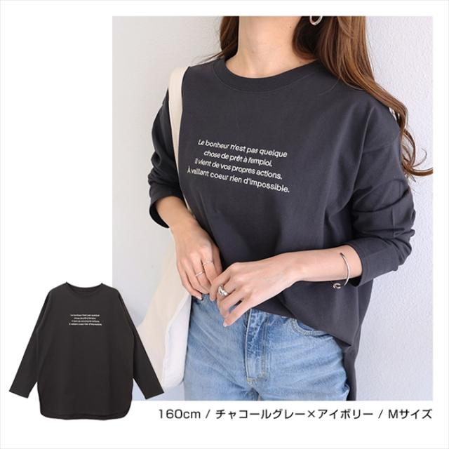 ロゴ刺繍 コットン 長袖 Tシャツ レディース クルーネック ラウンドヘム オーバーサイズ 体型カバー コーマ天竺 大人 長袖シャツ ロング丈 カットソー 女性 トップス きれいめ おしゃれ かわいい カジュアル オフィス 女性 春 夏 秋 シンプル 綿100% S M 送料無料 6002072
