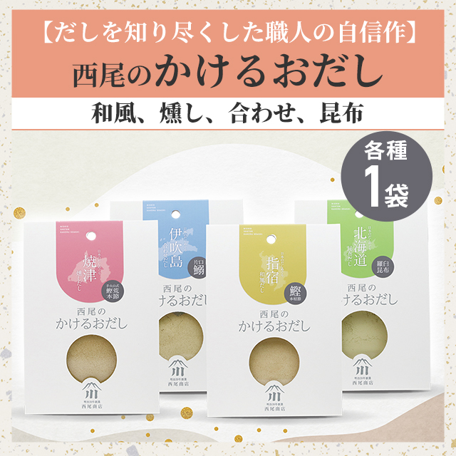 【だしを知り尽くした職人の自信作】西尾のかけるおだし(和風だし、燻しだし、合わせだし、昆布だし) 各種1袋 出汁 ダシ お取り寄せ 人気 定番 味噌汁 煮物