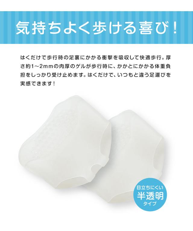 厚さ約1〜2mmの肉厚のゲルが歩行時に、かかとにかかる体重負担をしっかり受け止めます!