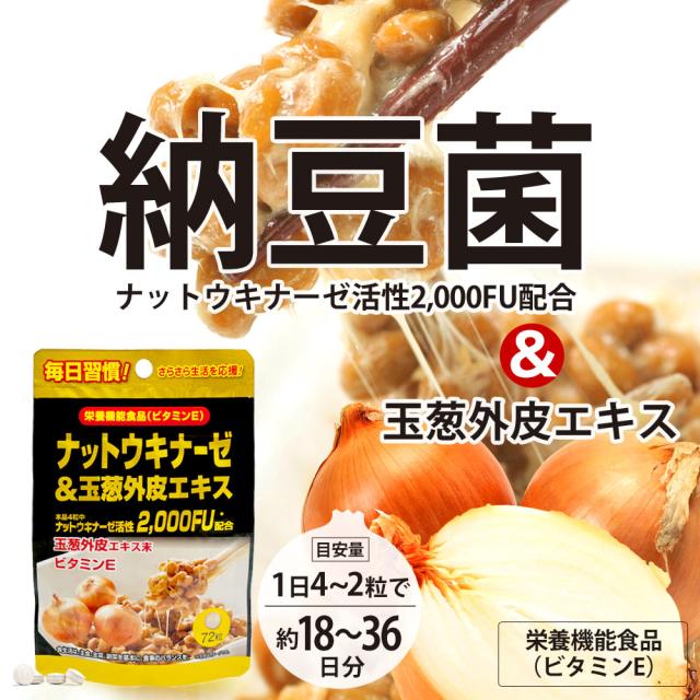 ナットウキナーゼ&玉葱外皮エキス 72粒 約18〜36日分 送料無料 メール便 | ナットウキナーゼ 納豆 納豆菌 納豆キナーゼ 玉葱 外皮 ケルセチン ビタミンE サプリ サプリメント 粒 男性 女性 健康 健康食品 食事で不足 栄養機能食品 美容 サポート