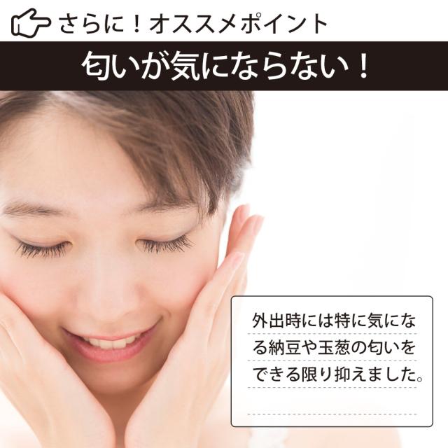 本品は、国内外で注目される日本の伝統食・納豆、日常では摂取が難しい玉葱外皮、ビタミンE等の栄養素を手軽に摂れる製品です。健康的な巡りのために積極的に摂りたい自然の恵みが1粒に凝縮されています。毎日続けて健康管理にお役立てください。