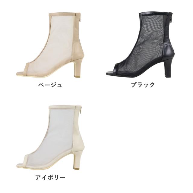 レディース シアーブーツサンダル オープントゥ 太ヒール 6.5cmヒール No.9107 22.5cm〜24.5cm 黒 ベージュ アイボリー LiBERTYDOLL リバティードール