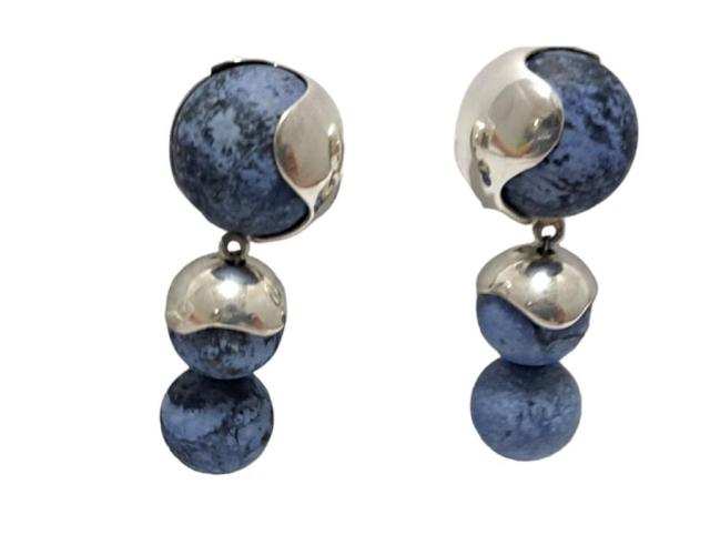 エルメス イヤリング ブルーストーン AG925 青色石付 シルバー SV925 耳飾り ヴィンテージ アクセサリー HERMES 【中古】