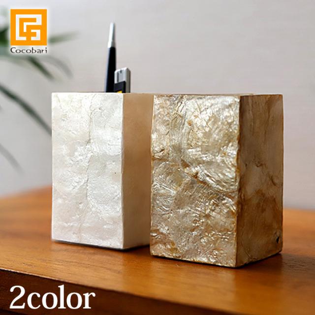 バリ雑貨、バリ島、アジアン雑貨、ハンドメイド、カピス貝、シェル、リゾートホテル、お部屋、バリ風、ホテル、インテリア、おしゃれ、お洒落 かわいい、デザイン、ペンスタンド、ペン立て、鉛筆立て、ホテル 業務用 卓上用 コンパクト 高級 小物 メイクブラシ 収納