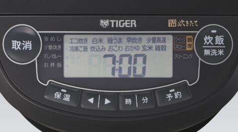 メニュー:エコ炊き/白米/極うま/少量炊き/少量高速/冷凍ご飯/すし・カレー/お弁当/おかゆ/玄米/雑穀/麦めし