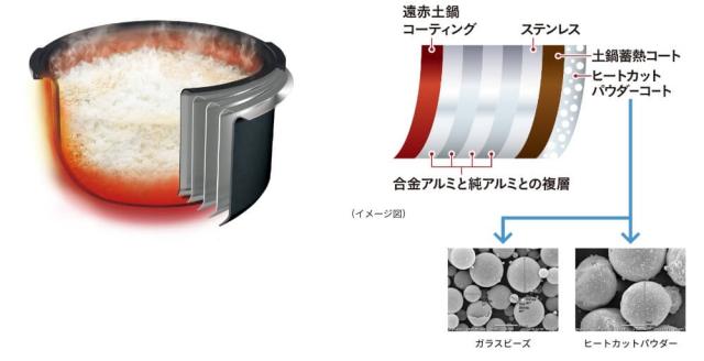 土鍋蓄熱コート釜の外側に、蓄熱性を高める素材「ヒートカットパウダー」を採用。