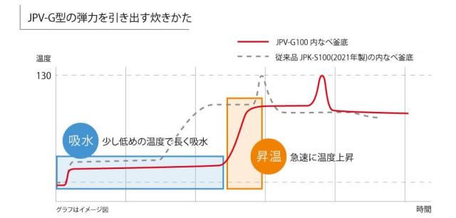 ※JPV-G100とメーカー従来品JPV-A100(2022年度製)の内なべの比較。