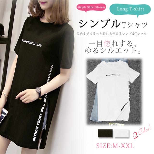【即納】大好評 新作 ロングtシャツ レディース 半袖 白 黒 ゆったり tシャツ 大きいサイズあり ロンt ビッグt 春秋 夏