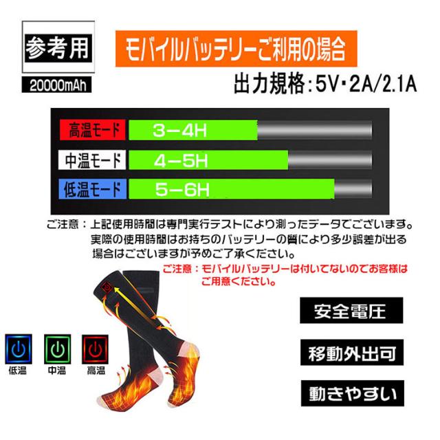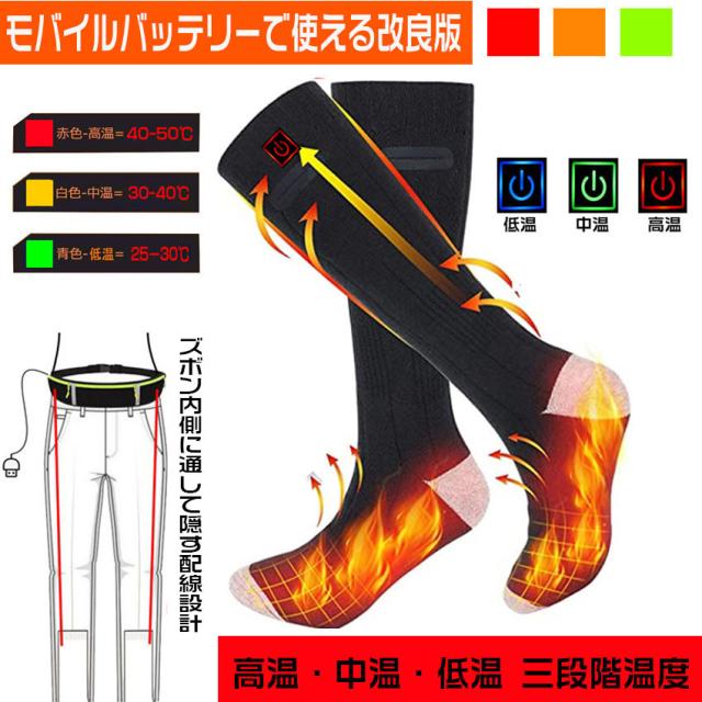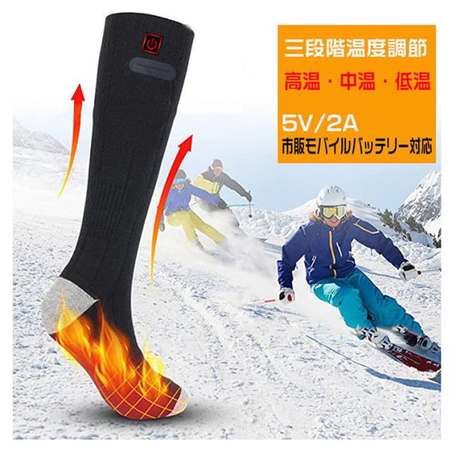 電熱ソックス 電熱靴下 発熱ソックス 暖かい靴下 防寒ソックス 厚手靴下 防寒対策 三段階温度調整 USB充電式 超厚手 冬用 水洗い可 男女兼用
