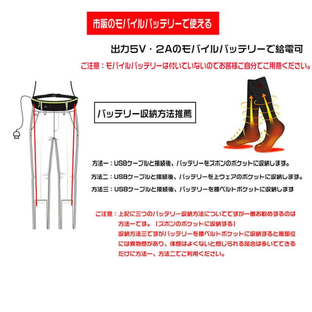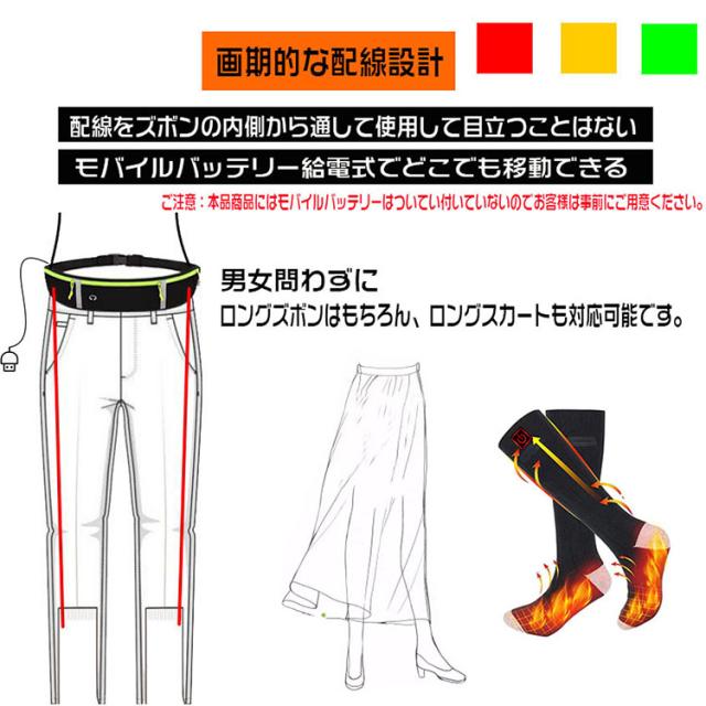 足を温めれば全身が暖かくなります。冬場では足の冷えに悩まされている方にとって本品電熱ソックスはいかがでしょうか