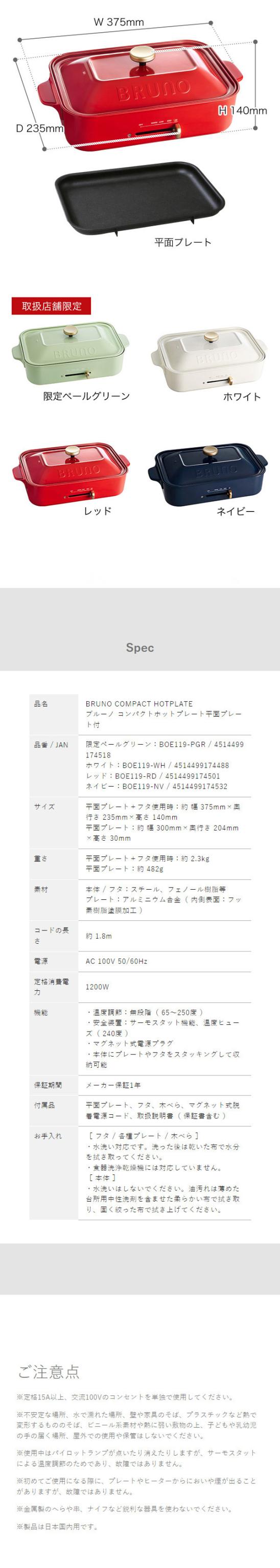 ■ BRUNO / ブルーノ コンパクトホットプレート 平面プレート付