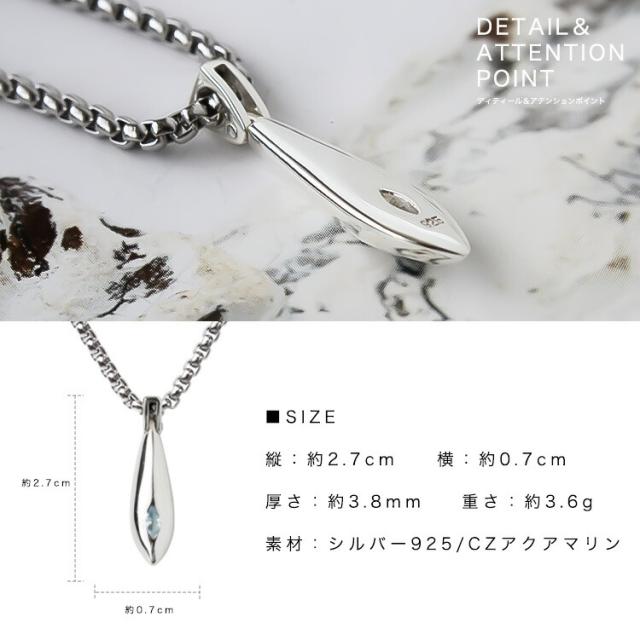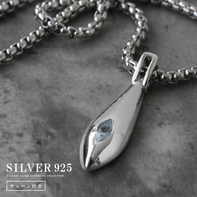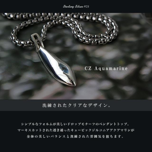 シルバーペンダント メンズ レディース シルバー925 アクアマリンカラー ドロップ型 流線型 雫 マーキスカット キュービックジルコニア チェーン付き シルバー 夏物 ギフト pe407