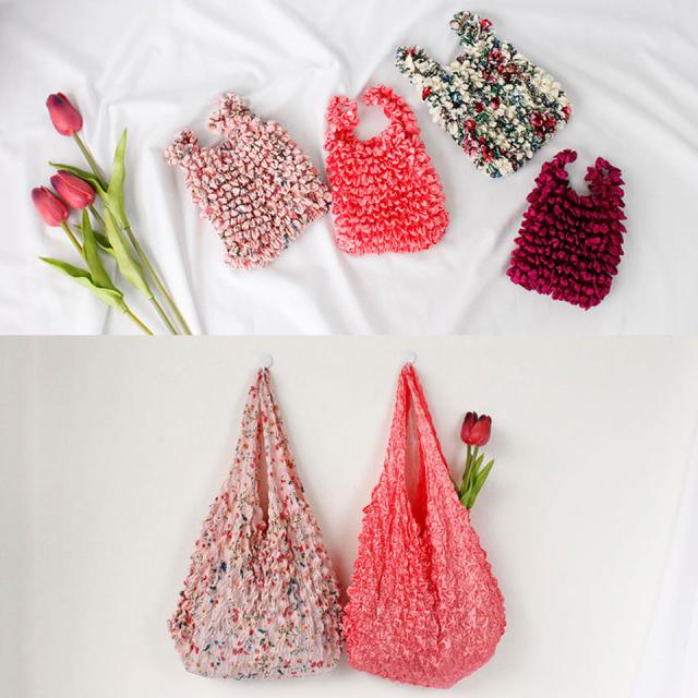 シワ感のあるプリーツ素材で出来たエコバッグです。手触りがやわらかく、とても軽いので、普段使いのバッグに常備しておけます。