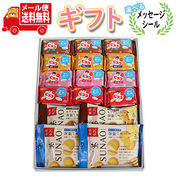 お菓子 ギフト 送料無料【選べるメッセージシール】グリコの定番!ビスケット系からだにやさしい健康プチギフトセット(6種・計16コ入)メール便 (omtmb9083g)【プチギフト 感謝 お菓子 個包装 お礼 お返し お祝 挨拶 退職 誕生日 プレゼント お中元 お歳暮】
