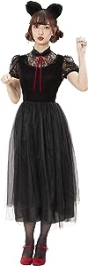 ●商品説明:ブラックカラーとロング丈がクラシカルな印象。スカート部分の2枚のチュールは丈が違うのでふんわり立体的に見えます。毛足の長いファーを使用したねこ耳カチューシャもインパクト大!胸元や袖のレースもエレガントです。コスプレ初心者やママにもおすすめ!●セット内容:カチューシャ、ワンピース●素材:ポリエステル100%●洗濯表示:洗濯不可、塩素系漂白剤による漂白不可、アイロンは中温で当て布使用、ドライクリーニング不可●総重量:240g●推奨サイズ:レディース/身長 155〜165cm、B 〜90cm、W 〜70cm、H 〜96cm●メイン部分の長さ(着丈等):122cm●開き:背中心ファスナー●B(実寸):92cm●W(実寸):72cm●肩幅(実寸):36cm●袖丈(実寸):26cm●原産国:中国●裏地の有無:スカート部分のみ有り