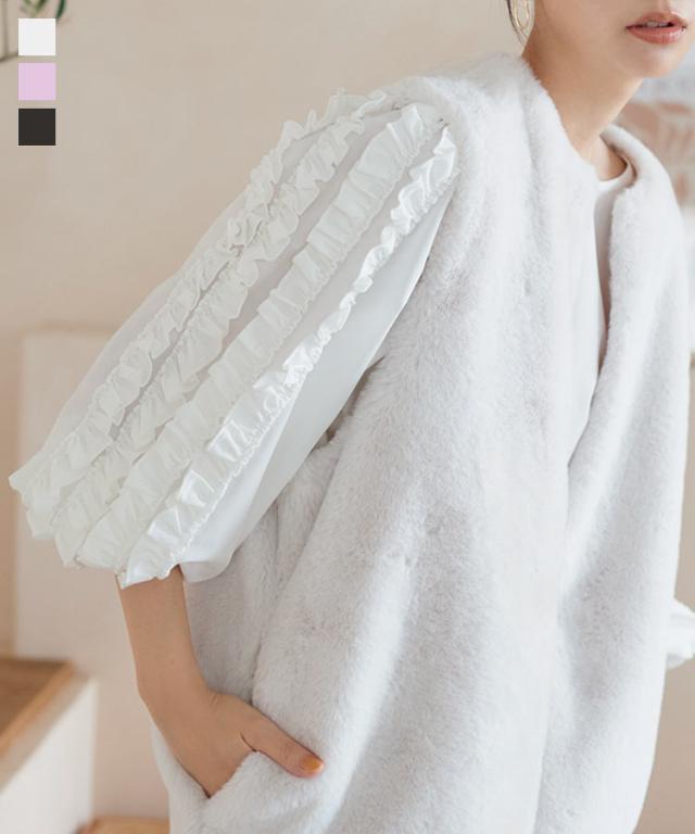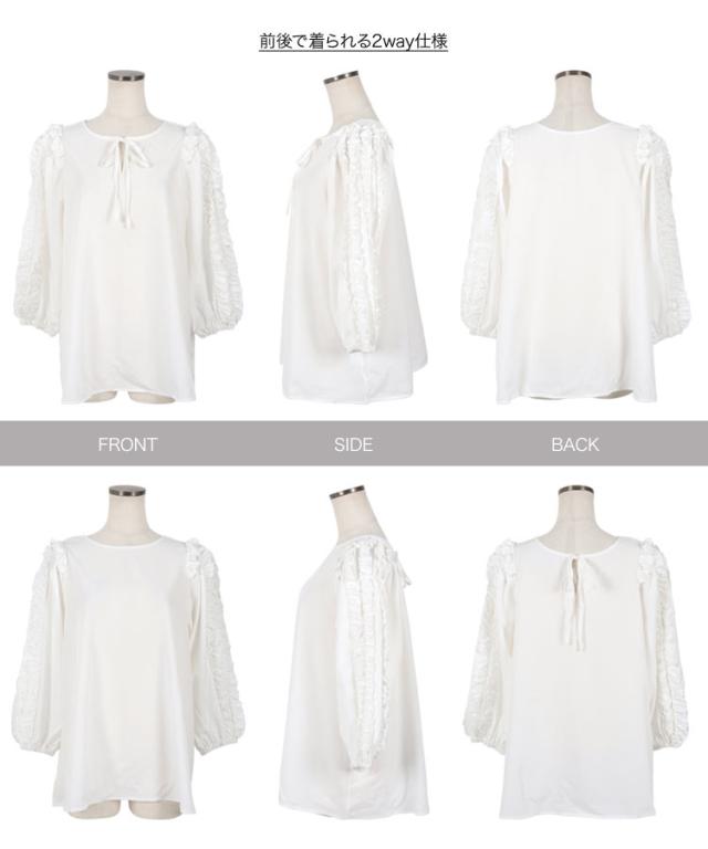 前後2wayホイップフリルブラウス C6861 入荷済 レディース トップス ブラウス 長袖 フリル リボンブラウス 前後2way 2way ホイップフリル リボン シャツ 7分袖 8分袖 クルーネック 丸首 肩フリル
