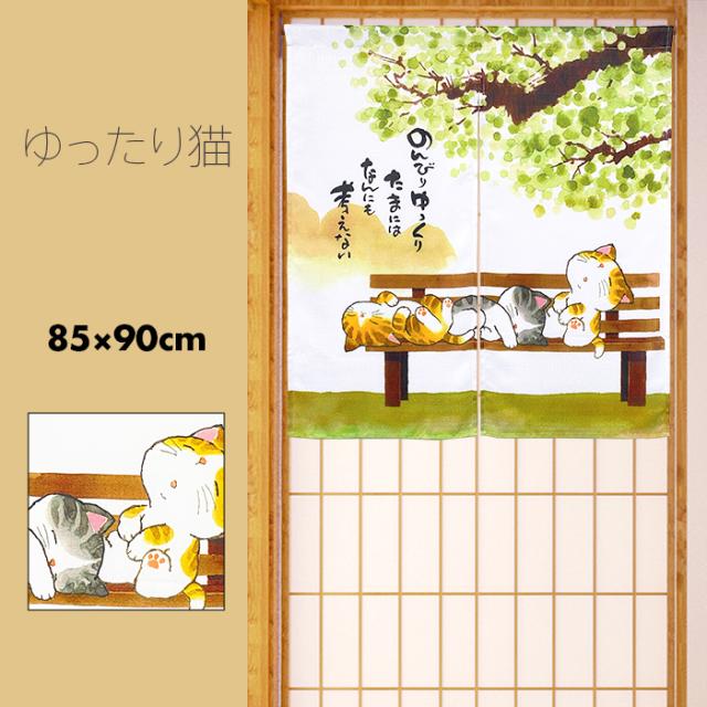 のれん 暖簾 おしゃれ カーテン 間仕切り 仕切りカーテン 目隠し 和風 和柄 和モダン 和風モダン 和風暖簾 日本 メッセージ付き 新緑 三毛猫 猫 ハチワレ にゃんこ ゆったり猫 85×90cm