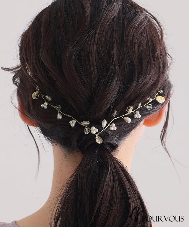 二次会 ゴールド きれいめ リーフモチーフ 大人可愛い 大人かわいい おしゃれ フォーマル レディース ヘアピン ヘアアレンジ フォーマルドレス 20代30代40代 お呼ばれ ミセス アクセサリー ファッション 結婚式 パーティードレス 新作 ヘアチャーム ヘアアクセ