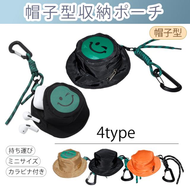 ポーチ 小物入れ イヤホンケース 収納バッグ 小物 イヤホン 収納 バッグ カラビナ 帽子型 イヤホンポーチ
