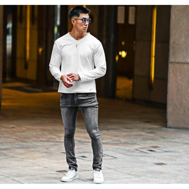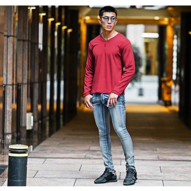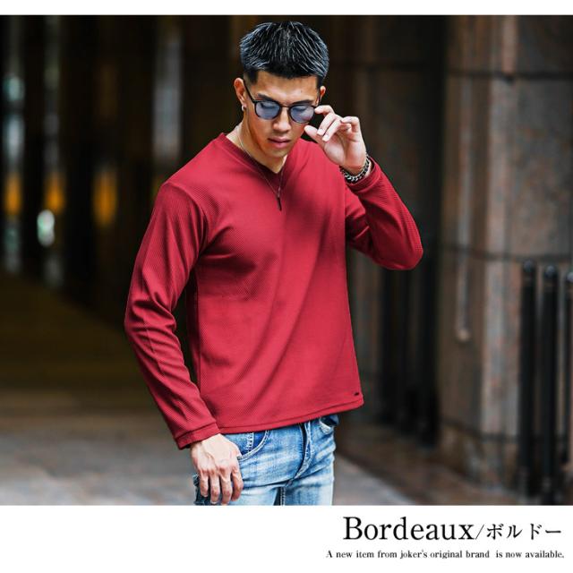 Tシャツ メンズ 長袖 無地 Vネック Tシャツ メンズ ブランド 長袖Tシャツ メンズ インナー ロンT カットソー ホワイト ブラック ボルドー スリム 刺繍 秋 秋服 秋物 秋冬 メンズファッション リゾート お兄系 オラオラ系 ちょいワル