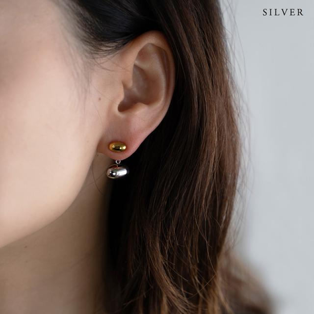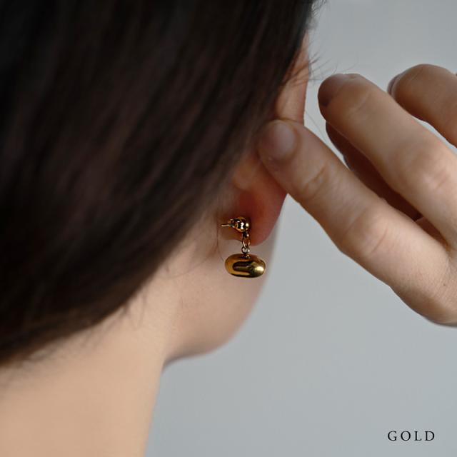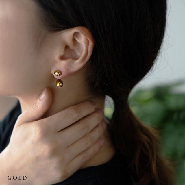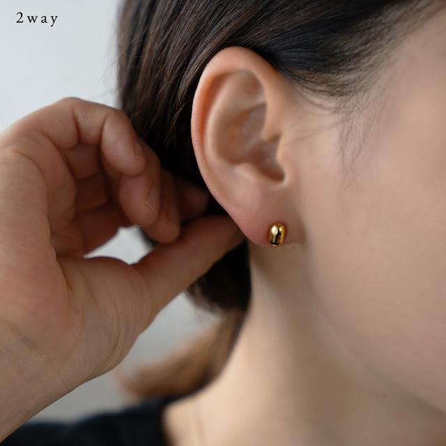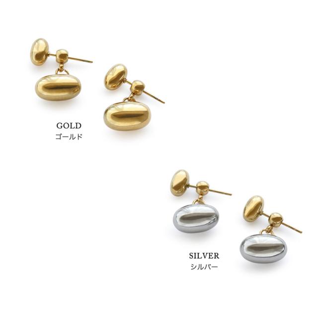 ピアス ステンレス製 レディース メタルボール 2WAY ビーンズ 楕円 金属アレルギー サージカルステンレス シンプル 大人可愛い ゴールド シルバー