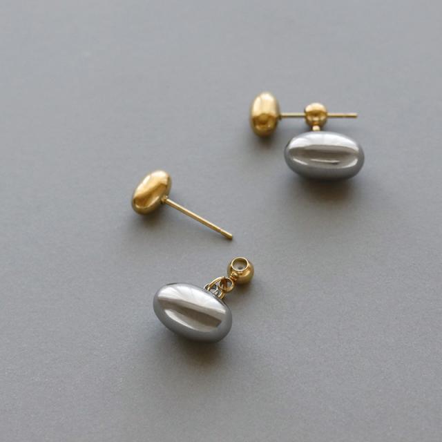 | 水にも強く、金属アレルギーの方でも比較的安心して使えるお肌に優しいサージカルステンレス製のピアスです。 ポスト側のピアスと後ろ側のモチーフで耳たぶを挟む込むスタイリッシュなデザイン。 少し重量感のあるぷっくりとした楕円モチーフの艶感が美しく、ふとした仕草で揺れるシルエットが耳元に映えます。 | |