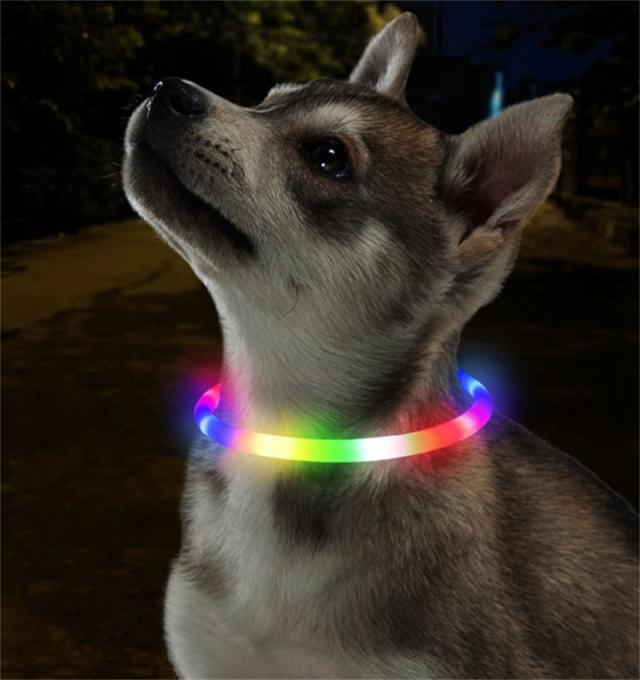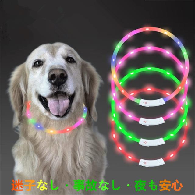 犬首輪 発光首輪 レインボー usb充電式 装着簡単 サイズ調整可能 ペット 犬 猫 視認性
