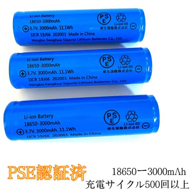 リチウムイオンバッテリー 充電池 1本 3.7V充電式 バッテリー LED懐中電灯用 ヘッドライト用 電化製品用 大容量 18650-3000mAh 保護回路付