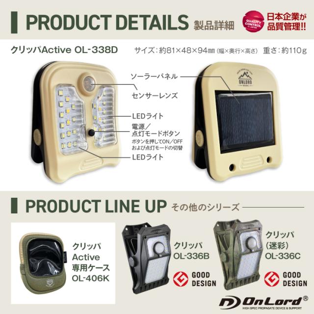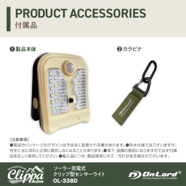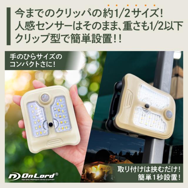 クリッパ クリップ式 センサーライト 災害 屋外 ソーラー『クリッパ Active』 虫対策 カラビナ付 OL-338D