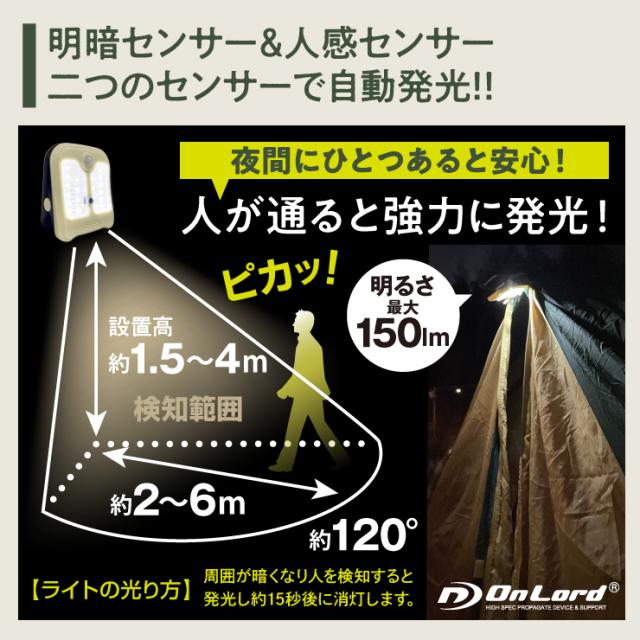 ★明暗と人感の2つのセンサーで、夜間に人が通ると強力に自動発光!
