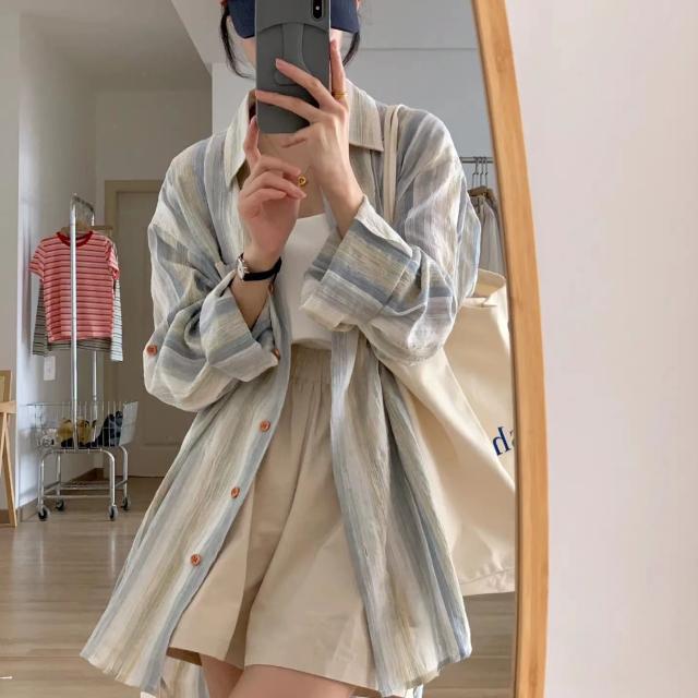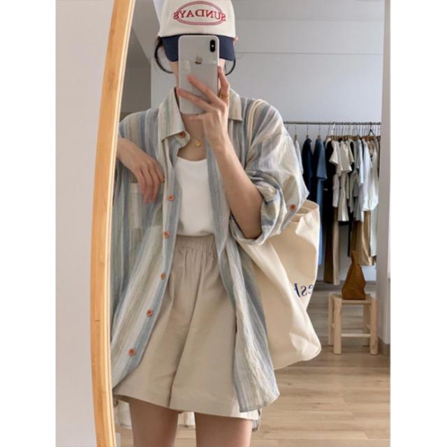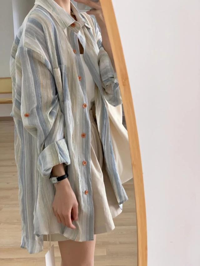 襟付ストライプカラーシャツ シャツ チュニック ストライプ 羽織り 重ね着 大人 30代 40代 レディース トップス シャツ 長袖 羽織り レギュラーカラー ストライプ
