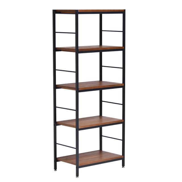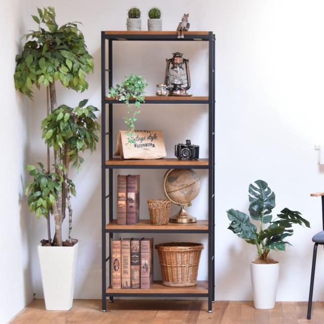 オープンラック 5段 ヴィンテージ調 天然木棚板 幅60cm ( ラック シェルフ 収納 棚 本棚 天然木 家具 桐 飾り棚 ディスプレイ 間仕切 木製 ブラックアイアン バイカラー )