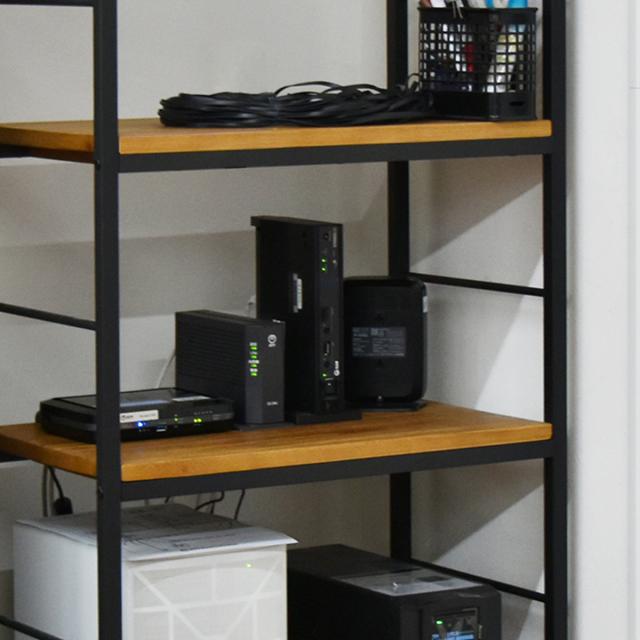 スピーカーやプリンタなどコードが必要な家電も、背面が空いているためすっきり収納可能です。風通りが良いので熱や湿気がこもりにくいのもポイントです。