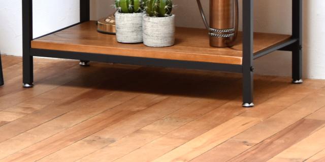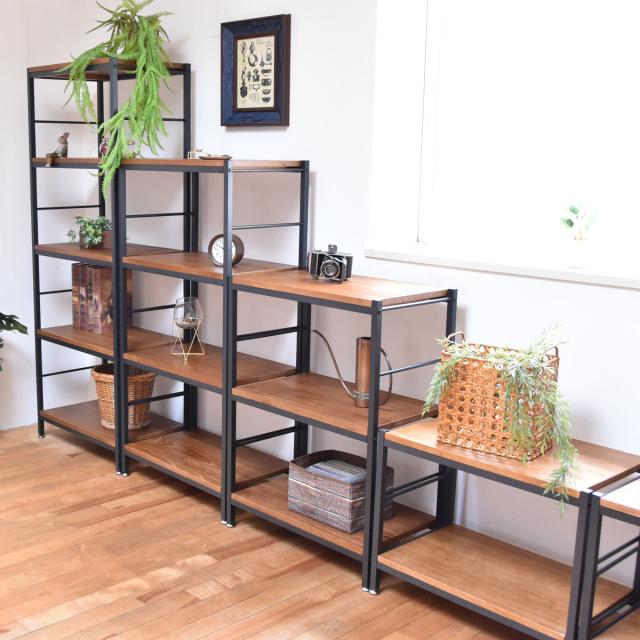 ヴィンテージ感漂う、天然木とアイアンのオープンシェルフ