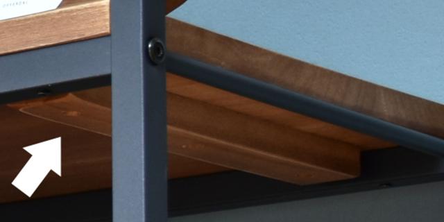 天板裏には強度のあるパイン材を補強材として2本入れているので、天板の反りを防いでくれます。