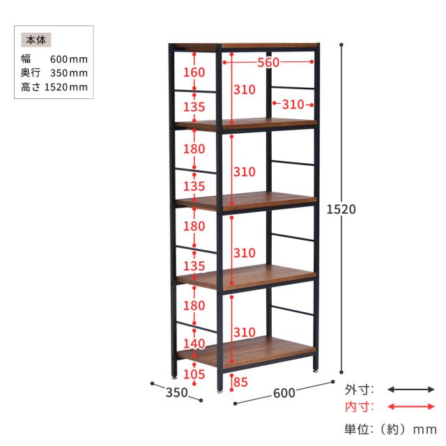 《 LH13601 オープンシェルフ 五段 間仕切り リビング収納 ビンテージ調 小物収納 雑貨収納 什器 店舗什器 インダストリアル 男前 約 幅60 奥行35 高さ152 cm センチ カフェ風 キッチン リビング 子ども部屋 本 CD DVD マガジンラック 茶 シンプル ナチュラル オシャレ 収納家具 北欧 新生活 ひとり暮らし ワンルーム 》