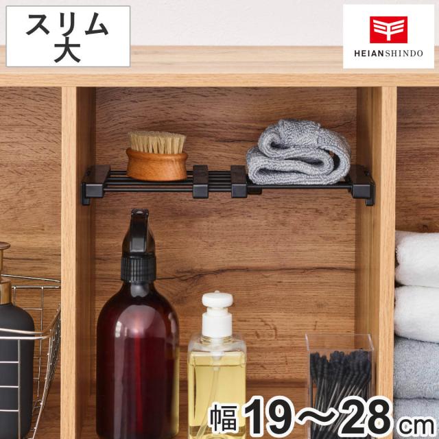 つっぱり棚 突っ張りすき間棚 スリム大 取付寸法19〜28cm ブラック ( つっぱり 棚 収納 縦 横 スリム 取り付け 伸縮棚 隙間収納 追加棚 仕切り 収納棚 突っ張り棚 小物収納 つっぱり棒 簡単取り付け 小物置き 黒 ブックエンド )