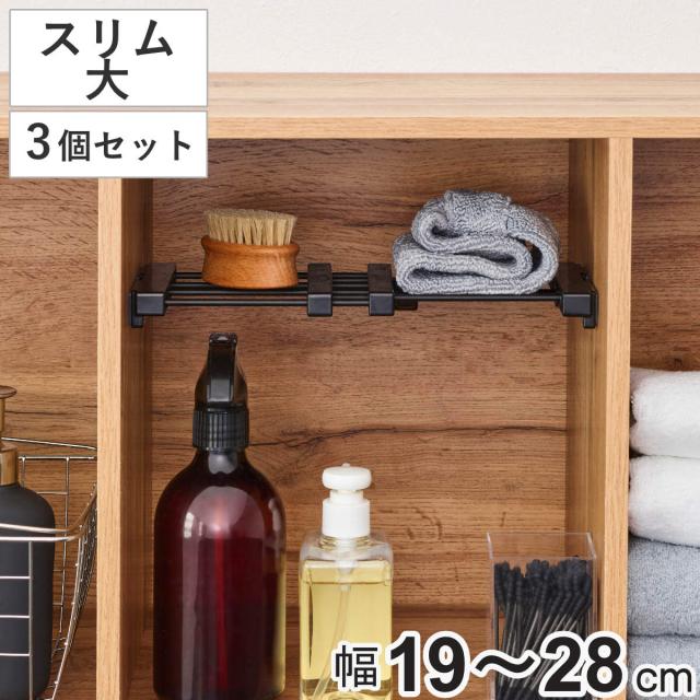 つっぱり棚 3個セット 突っ張りすき間棚 スリム大 取付寸法19〜28cm ブラック ( つっぱり 棚 収納 縦 横 スリム 取り付け 伸縮棚 隙間収納 追加棚 仕切り 収納棚 突っ張り棚 小物収納 簡単取り付け 小物置き 黒 ブックエンド )