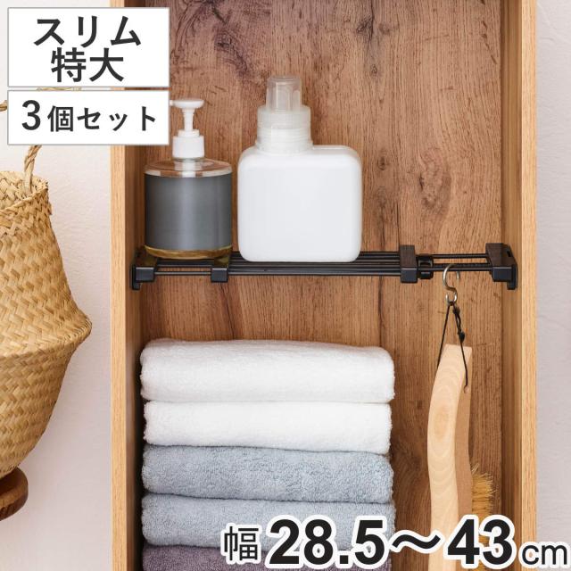 つっぱり棚 突っ張りすき間棚 スリム特大 取付寸法28.5〜43cm ブラック ( つっぱり 棚 収納 縦 横 スリム 取り付け 伸縮棚 隙間収納 追加棚 仕切り 収納棚 突っ張り棚 小物収納 つっぱり棒 簡単取り付け 小物置き 黒 ブックエンド )