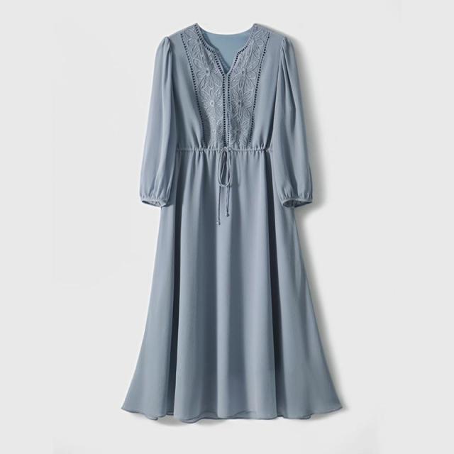 ワンピース ロングワンピース 結婚式 刺繍 長袖 フレア レディース 大きいサイズ フォーマル 黒 ロング パーティドレス きれい