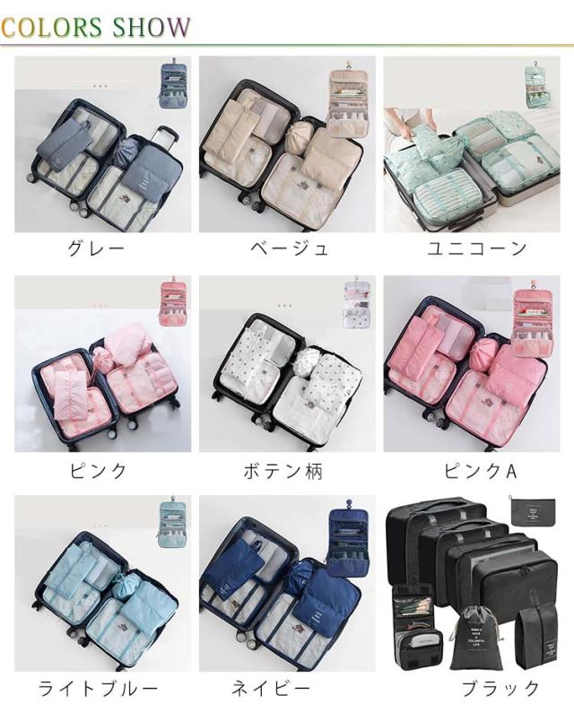 | スーツケースの中もすっきり整理整頓便利なトラベルポーチ8点セット。 バッグ内がすっきり整理でき、旅での気分を楽しくさせます。 シューズケース付きで、入院の際も便利 良質なポリエステル材料を採用、防水、防塵、軽量の特徴を持ち、携帯に便利です。繰り返し使用可能で長持ちします 旅行や出張などのほか、普段でも荷物の整理にも便利です。 使わないときは小さくコンパクトに折りたたむことができます。男女問わずお使い頂けます。 | |