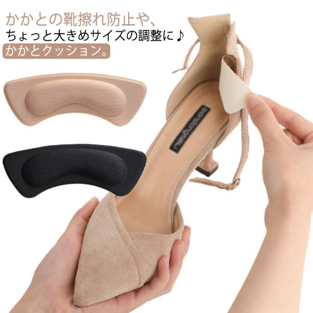 送料無料 4足セット 靴擦れ防止 靴ずれ 防止 かかと パッド クッション スポンジ 柔らかい テープ 靴 パンプス サイズ調整 パカパカ防止 クッションパッド 靴脱げ 防止 インソール かかと保護 靴の隙間 フットケア