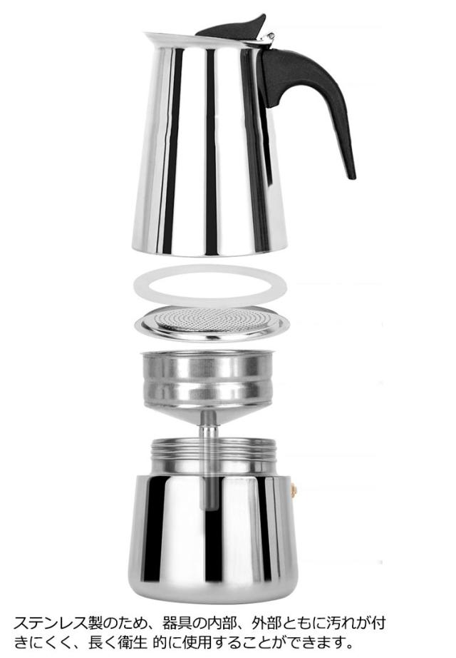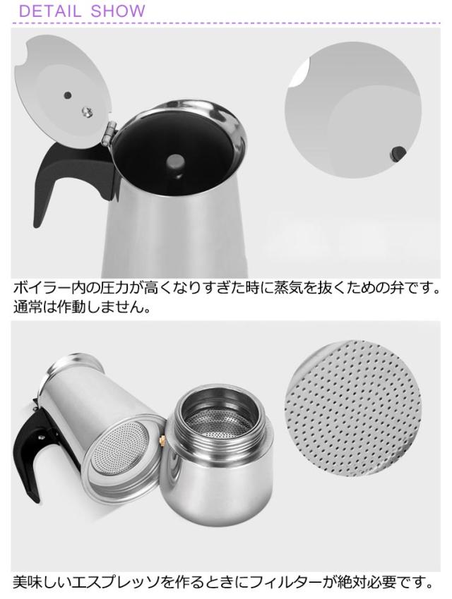 直火式エスプレッソメーカー コーヒーメーカー 直火式 エスプレッソメーカー 2/4/6カップ 家庭用 コーヒーパーコレーター コーヒー 珈琲 コーヒーマシン ガス 電気ストーブ用 コーヒーポット ステンレス アイスコーヒー キッチン用品 コーヒーマシーン