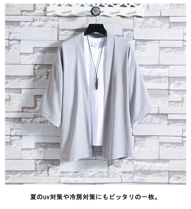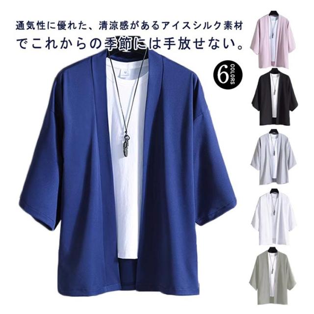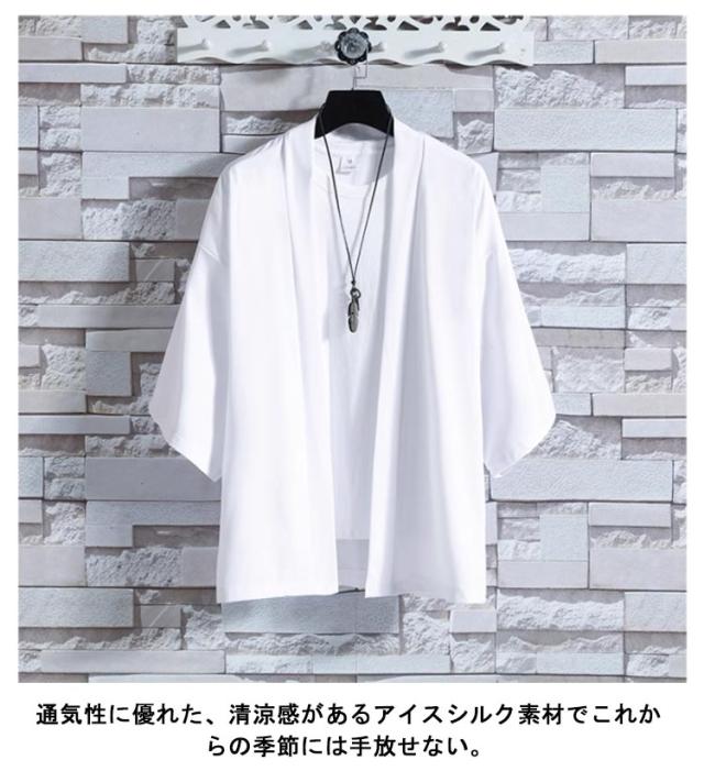 | 通気性に優れた、清涼感があるアイスシルク素材でこれからの季節には手放せない。 肩幅と身幅に余裕を持たせたビッグシルエットで楽な着心地。 夏のuv対策や冷房対策にもピッタリの一枚。 夏祭り、花火大会にもおすすめです。 | |