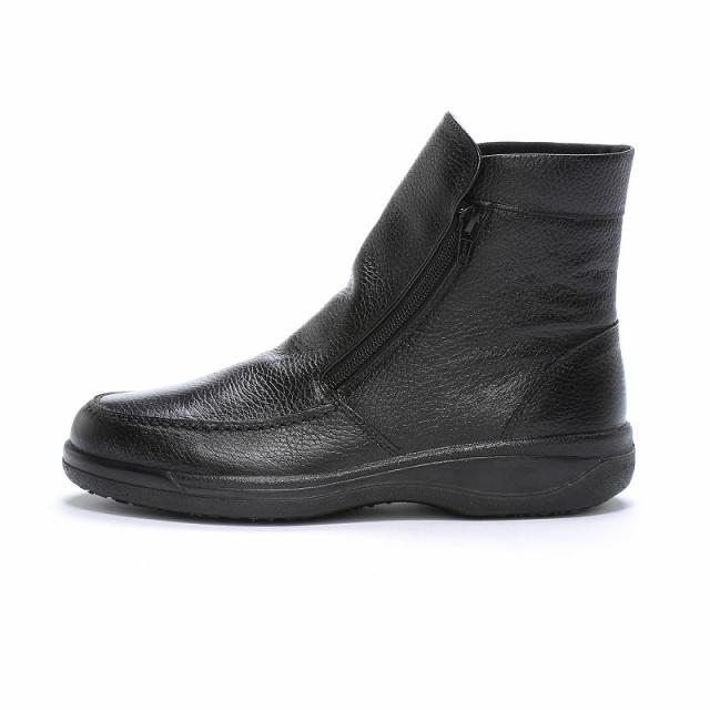 「ムーンスター」の雪寒地向け本革ブーツです。日本製ならではの丁寧できめ細やかな作りが魅力です。革の表面に撥水加工を施していますので、水をはじいて靴内を快適に保ちます。ソールには一般的なガラス繊維に加え、その1/10以下のサイズの超微細なウールガラス繊維を配合した防滑ラバー「3Dナノスペラン(R)」を採用しています。ラバー本来の柔らかさ・弾力性は維持したまま、ガラス繊維の総数を従来の約4倍の本数に増加させて防滑効果を約15%向上させています。スペラン部が路面を三次元的にとらえるスポンジ積層構造です。デザインは、ハイカットのブーツタイプ。内外両側にファスナーがある脱ぎ履きがしやすいダブルファスナー仕様です。ヒールの高さは4.0?pで、重量は25.5?pで片足約400gです。【撥水加工】アッパーに撥水加工を施しています。水をはじいて靴内を快適に保ちます。※防水仕様ではありません。