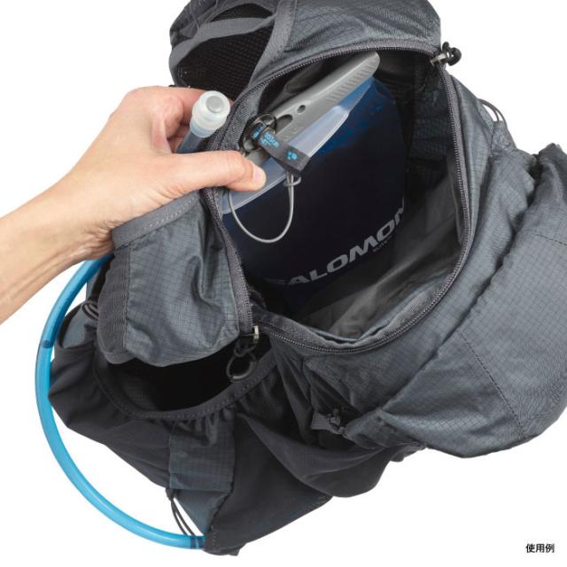 ソフトフラスク用ポケット、ブラッダー用コンパートメント、ロールトップアクセスなど、収納の工夫が随所に凝らされています。また、寒い日や雨の日でも簡単に中身を取り出せるよう、トリムが大きくなっています。